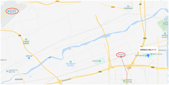 距西安咸陽國(guó)際機(jī)場(chǎng),約30公里,打車40分鐘;