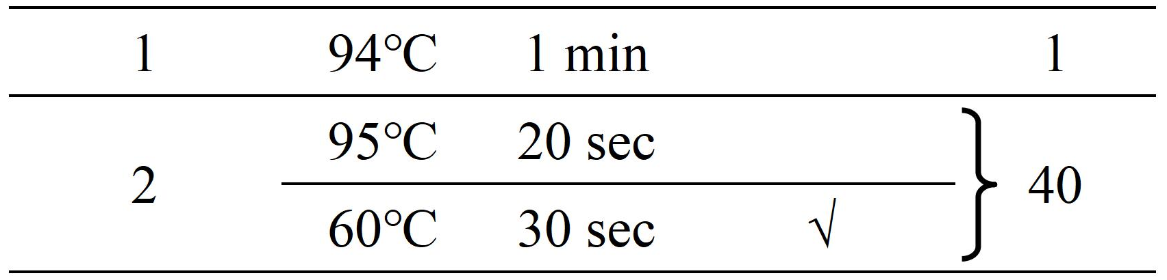 2) 向上述n個反應(yīng)管中分別加入陰性對照、待測樣品DNA、陽性對照各5 μL,總反應(yīng)體積為25 μL。蓋緊管蓋,短暫離心,立即進(jìn)行PCR擴(kuò)增反應(yīng)。
