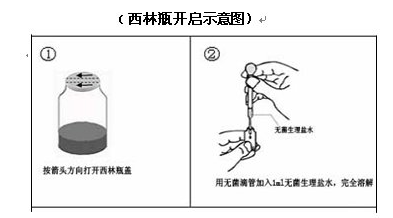 1、西林瓶的打開方法: 本西林瓶在鋁蓋上有箭頭的標(biāo)志,開啟西林瓶前,用75%酒精棉消毒西林瓶表面,在無菌條件下,按鋁蓋上的箭頭方向打開鋁蓋,撕開鋁蓋,打開西林瓶膠塞。