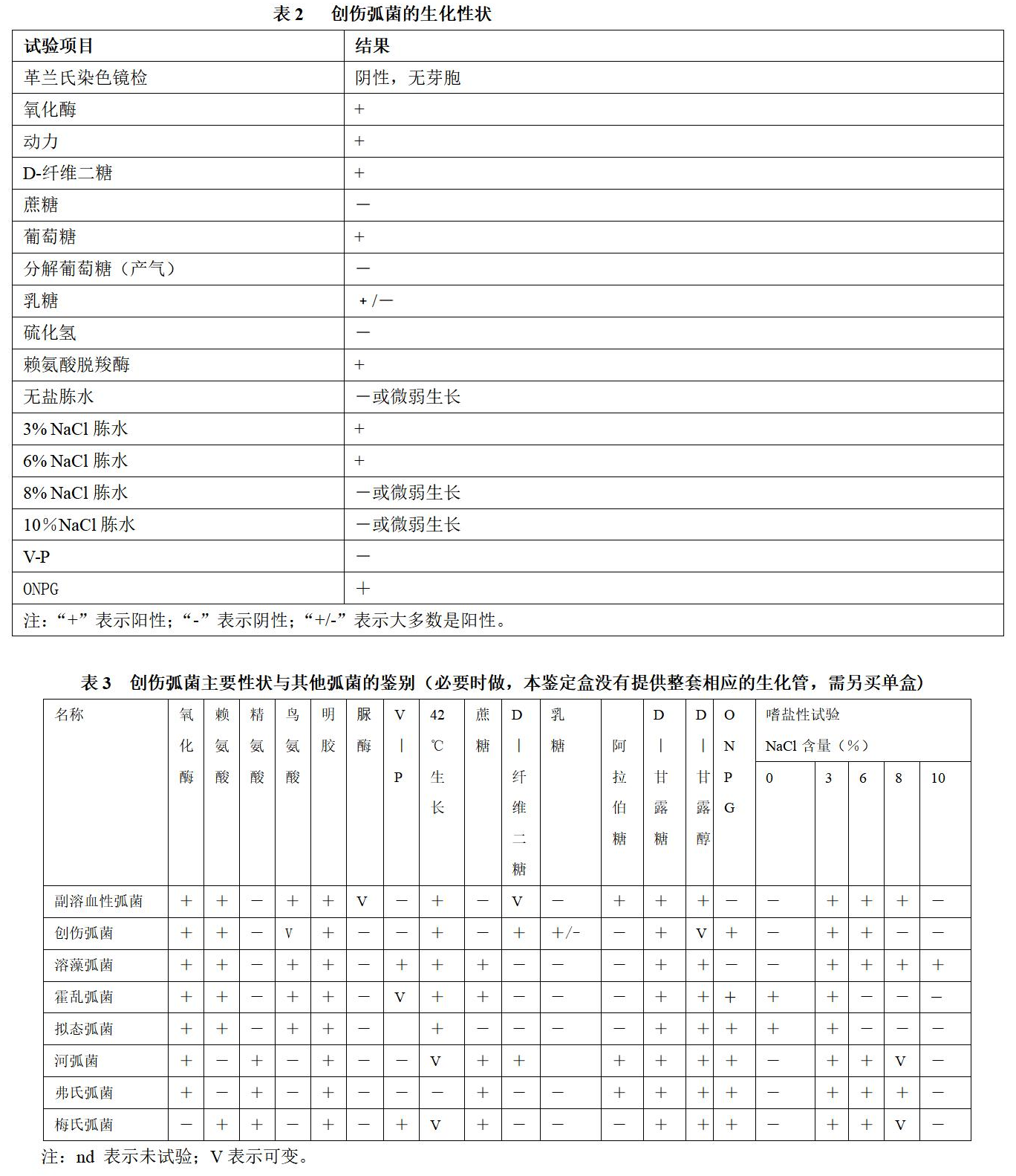 四)創(chuàng)傷弧菌的生化特性(見表2)