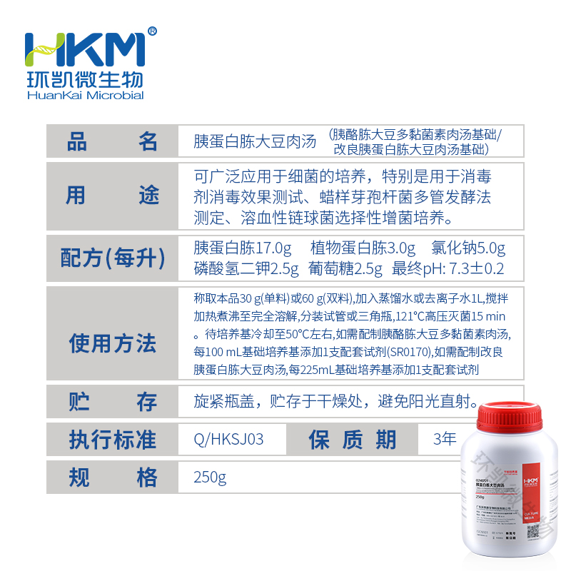產(chǎn)品名稱:胰蛋白胨大豆肉湯(TSB)培養(yǎng)基