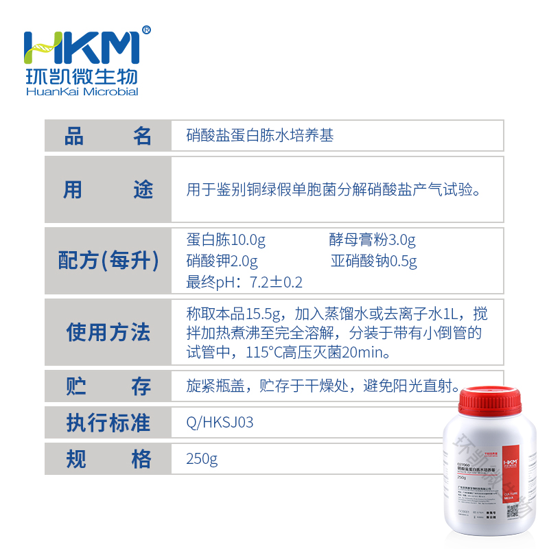 產(chǎn)品名稱(chēng):硝酸鹽蛋白胨水培養(yǎng)基