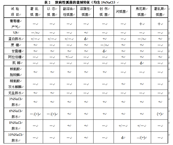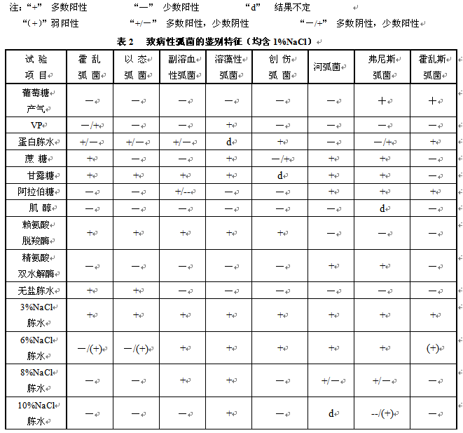 四)腸桿菌科常見屬、種的生化特性見表2 (只供參考)