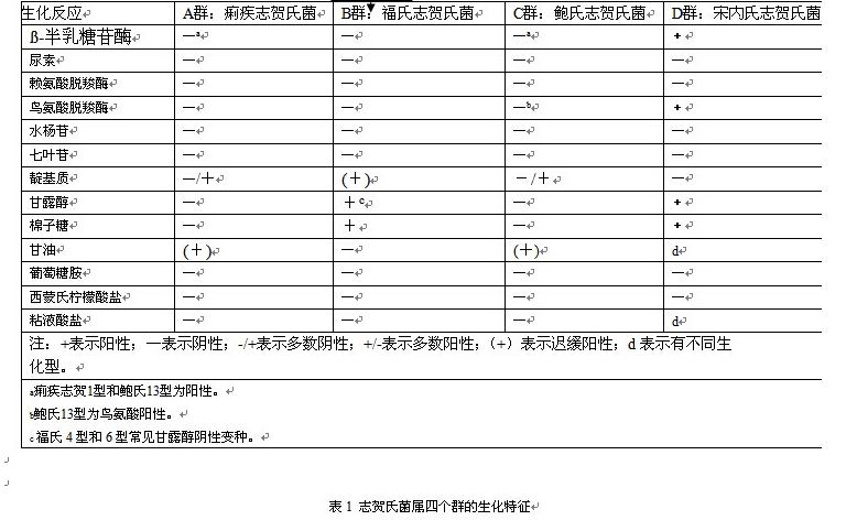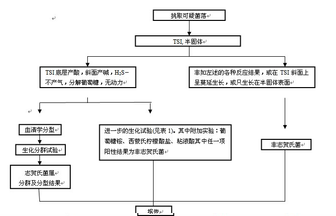 四)志賀氏菌生化鑒定特征 (詳見下生化鑒定程序圖)