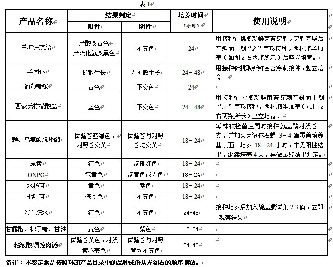 注意:如有特殊的接種方式、培養(yǎng)時(shí)間或培養(yǎng)方式,請(qǐng)?jiān)斠娒糠N生化鑒定管附帶的使用說明。