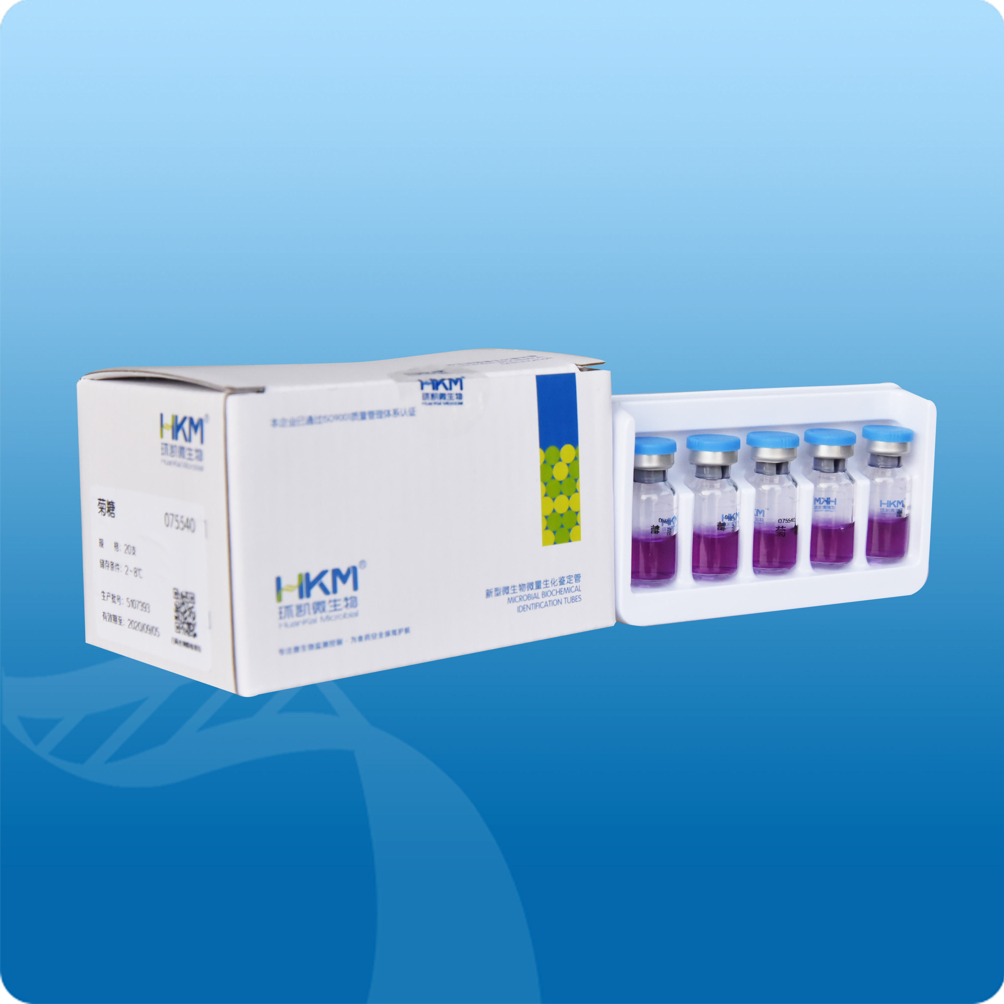 挑取待檢菌落進(jìn)行革蘭氏染色鏡檢,將新鮮菌苔接種于普通肉湯中37℃培養(yǎng)18-24h或用0.85%無菌生理鹽水稀釋至0.5McFa-rland (約108cfu/mL), 各吸取0.05-0.08mL(約1~2滴)的肉湯培養(yǎng)物或菌懸液加入每種微量西林瓶內(nèi)。將已接種的西林瓶再套上膠塞,一般采用全加塞(如圖2左兩瓶所示),特殊情況在下表注明采用半加塞(如圖2右兩瓶所示),直立于內(nèi)托的凹槽內(nèi)(如圖2),或放置于合適的瓶架中,于35-37℃培養(yǎng)箱中培養(yǎng),結(jié)果觀察見下表1。注意:如有特殊的接種方式、培養(yǎng)時(shí)間或培養(yǎng)方式,請(qǐng)?jiān)斠娒糠N生化鑒定管附帶的使用說明。