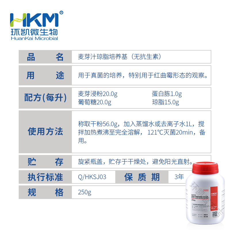 產(chǎn)品名稱:麥芽汁瓊脂培養(yǎng)基(無抗生素)